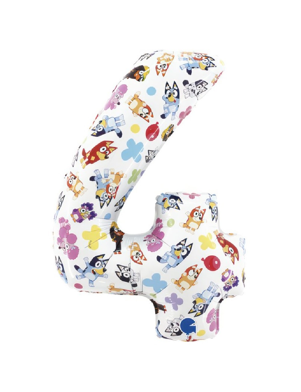 Balon folie Cifra 4 Bluey Family, dimensiuni aprox. 65 x 90 cm (dezumflat), aprox. 52 x 72 cm dupa umflare, poate fi umplut cu heliu (pluteste) sau cu aer (nu pluteste).