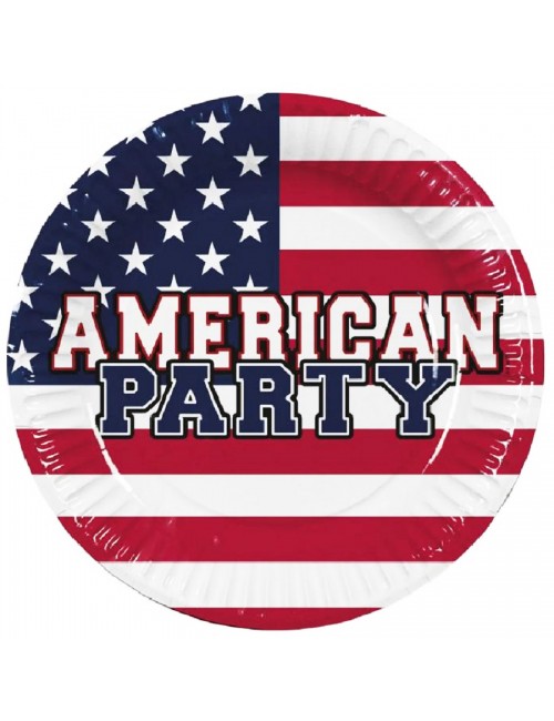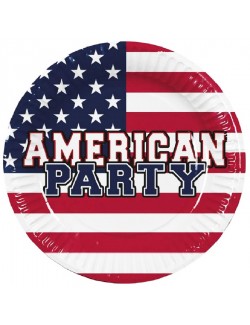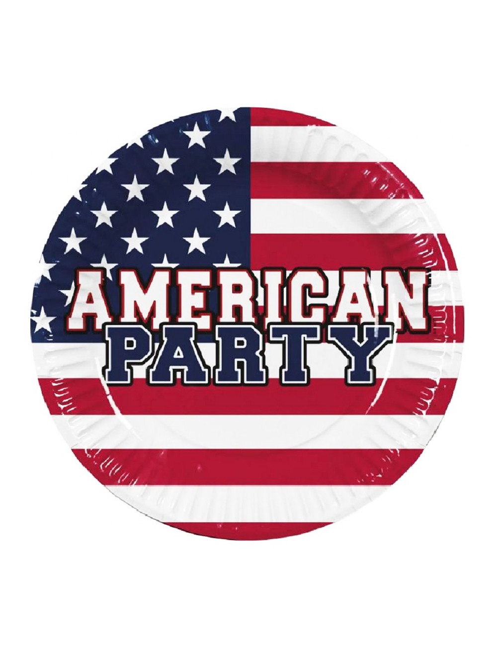 Set 10 farfurii Steag SUA American Party, diametru 23 cm, de unica folosinta, rotunde, fabricate din carton.