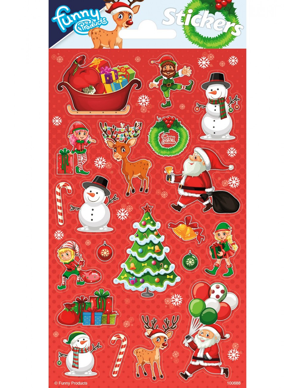 Autocolante / Stickere Craciun, o fila cu dimensiuni 20 x 10 cm, continand autocolante cu Oameni de zapada, Mos Craciun, Elfi, Reni si alte elemente specifice.