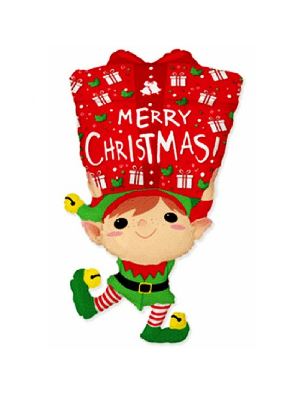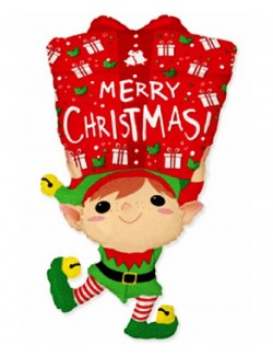 Balon folie Funny Elf, dimensiuni 104 x 55 cm (dezumflat), imprimeu identic pe ambele parti, poate fi umplut cu aer sau cu heliu