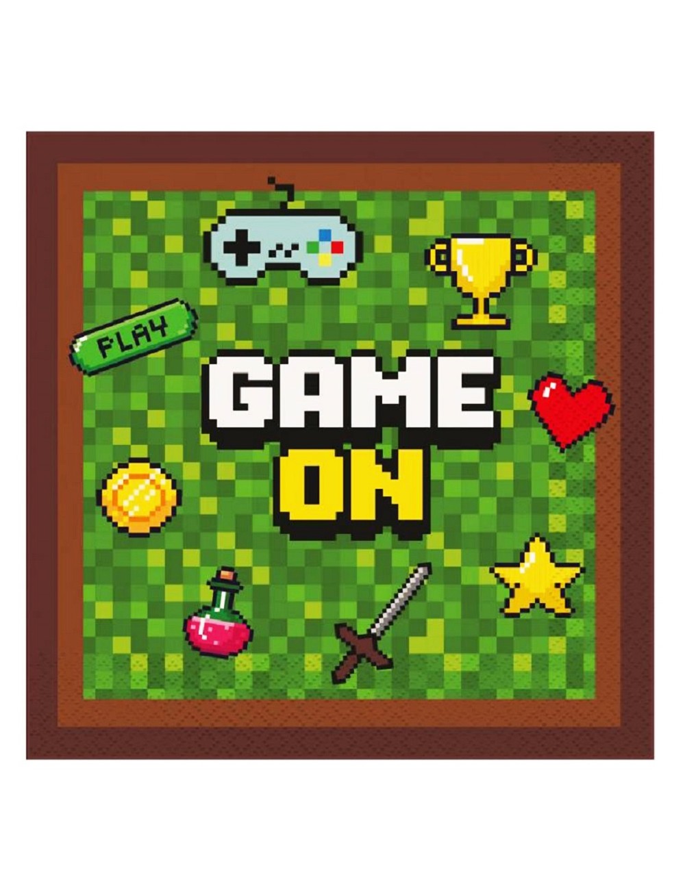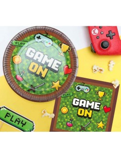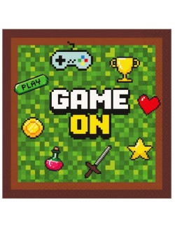 Set 20 servetele Game On, 33 x 33 cm (extins), multicolore, din 3 straturi de hartie, imprimeu inspirat de fantastica lume a jocurilor video.