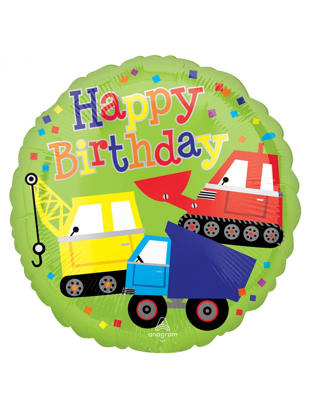 Balon folie, Utilaje Constructii Happy Birthday, diametru balon dezumflat 43 cm, destinat umplerii cu heliu (pluteste) sau cu aer (nu pluteste).