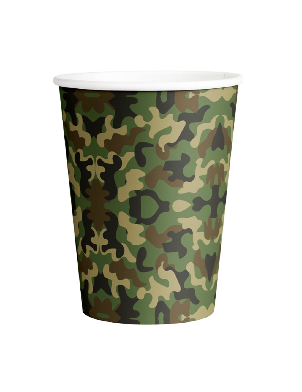 Set 8 pahare Army - Camuflaj Party, capacitate 250 ml, de unica folosinta, din carton, perfecte pentru petreceri tematice.