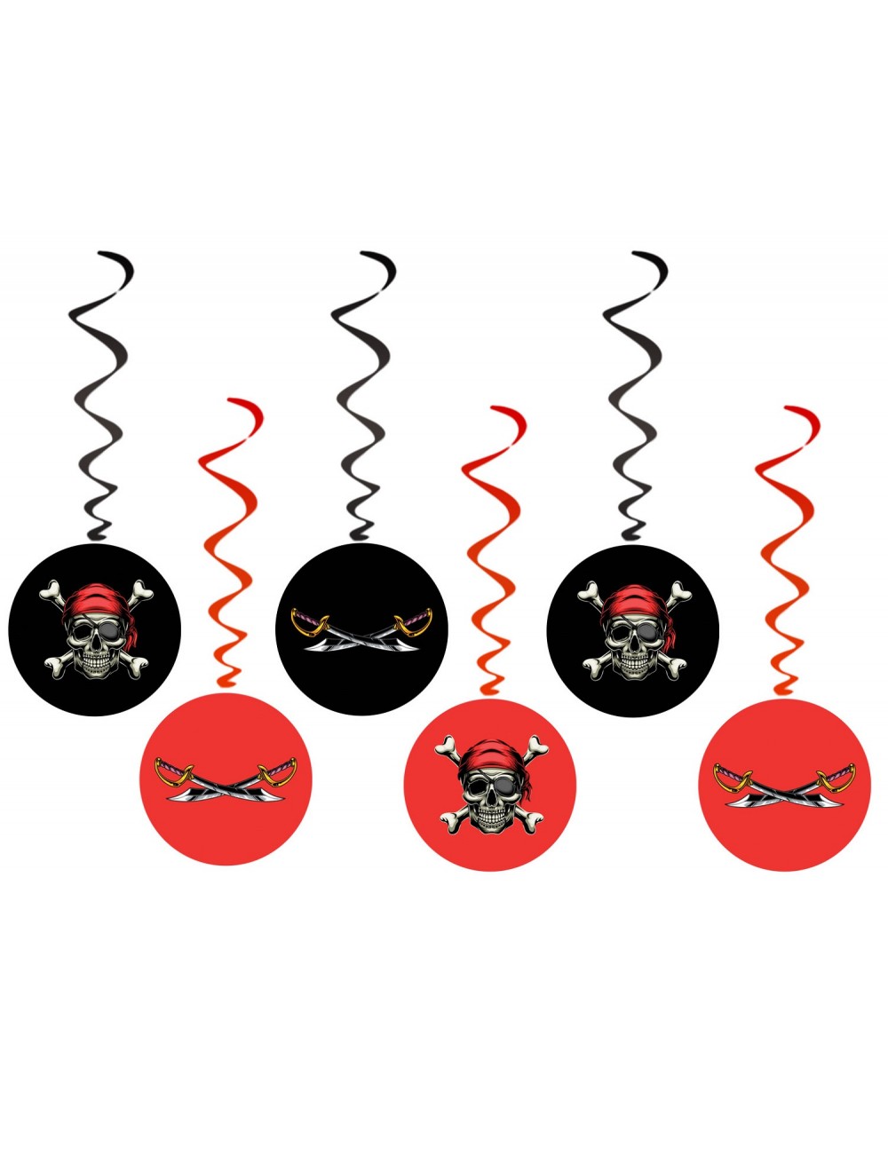 Set 6 decoratiuni suspendate, Party Pirati, contine 6 spirale de care sunt atasate decoratiuni rotunde (9,5 cm), fabricate din carton.