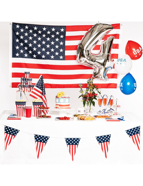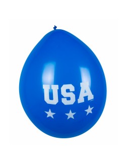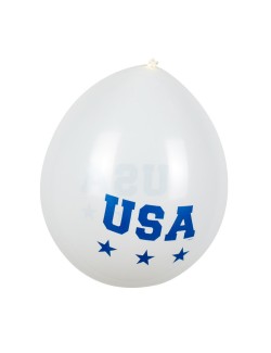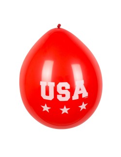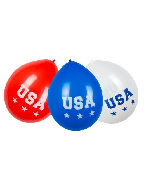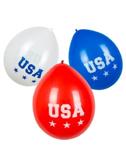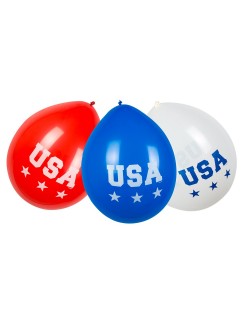 Set 6 baloane Party USA, 25 cm, fabricate din latex (cauciuc natural), culori rosu, alb, albastru, ipentru petreceri tematice.