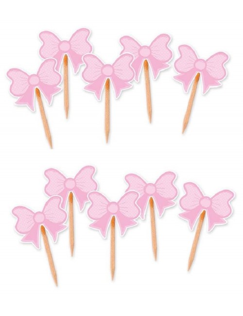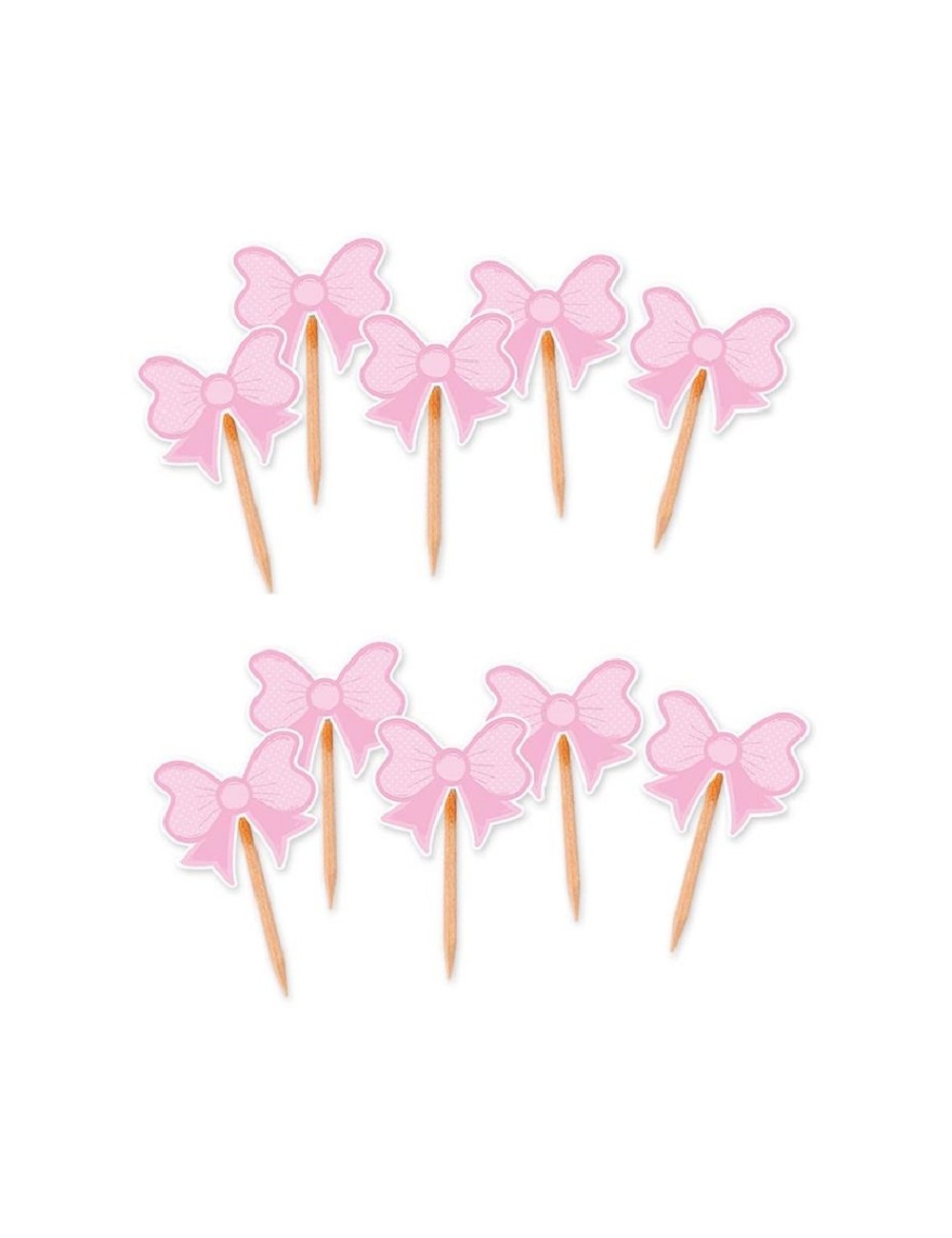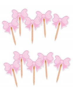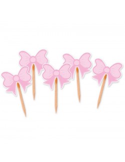 Set 10 Scobitori decorative cu Fundite roz, inaltime 7 cm, din lemn si decoratiuni din hartie imprimata.