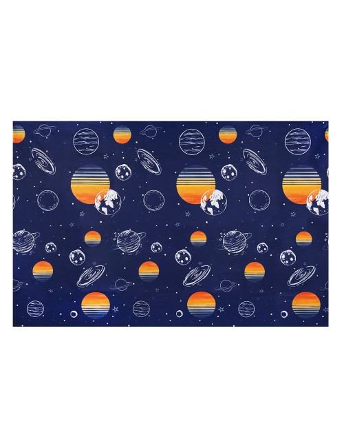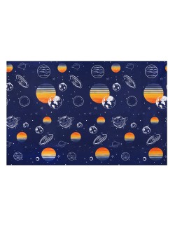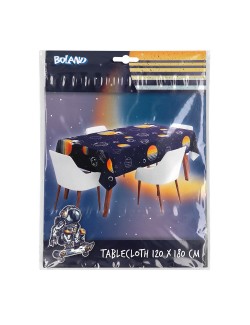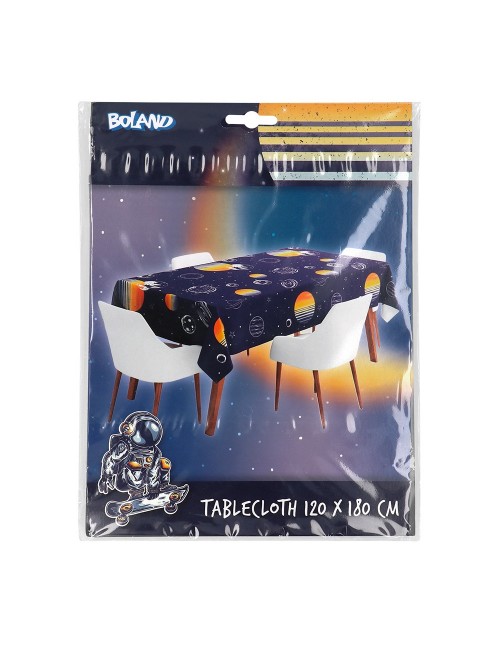 Fata de masa din hartie, imprimeu Spatiu Cosmic, dimensiuni 120 x 180 cm, pentru petreceri tematice.