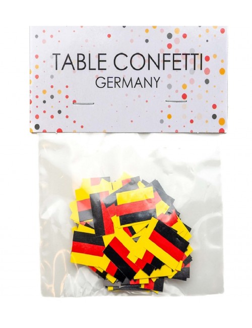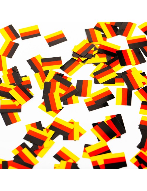 Set 150 Confetti Steag Germania, din hartie, dimensiuni stegulet-aprox. 16*13 mm, culori galben-rosu-negru, pentru decorarea meselor festive.