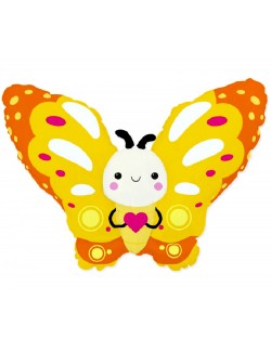Balon folie, Fluture galben, 113 x 60 cm, culori intense, imprimeu identic pe ambele parti, poate fi umplut cu aer (nu pluteste) sau cu heliu (pluteste).