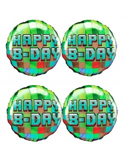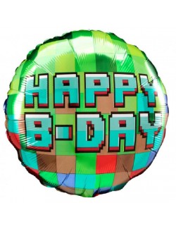 Balon folie, Pixels Happy B-Day!, diametru 43 cm, multicolor, imprimeu identic pe ambele parti.