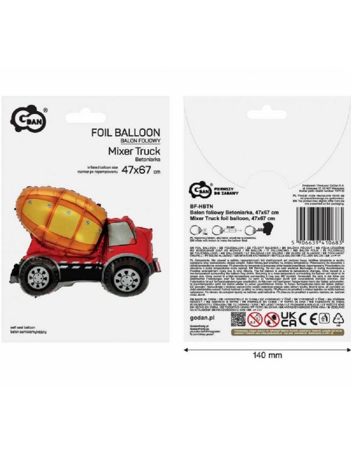 Balon folie, Betoniera, dimensiuni 47 x 67 cm (umflat), destinat umplerii cu heliu (pluteste) sau cu aer (nu pluteste).