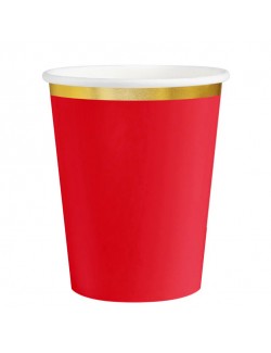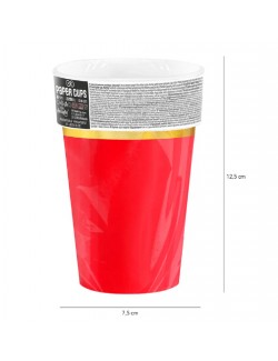 Set 6 Pahare Rosi cu garnitura aurie, din carton, capacitate 220 ml, de unica folosinta.