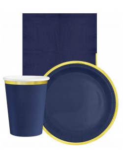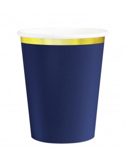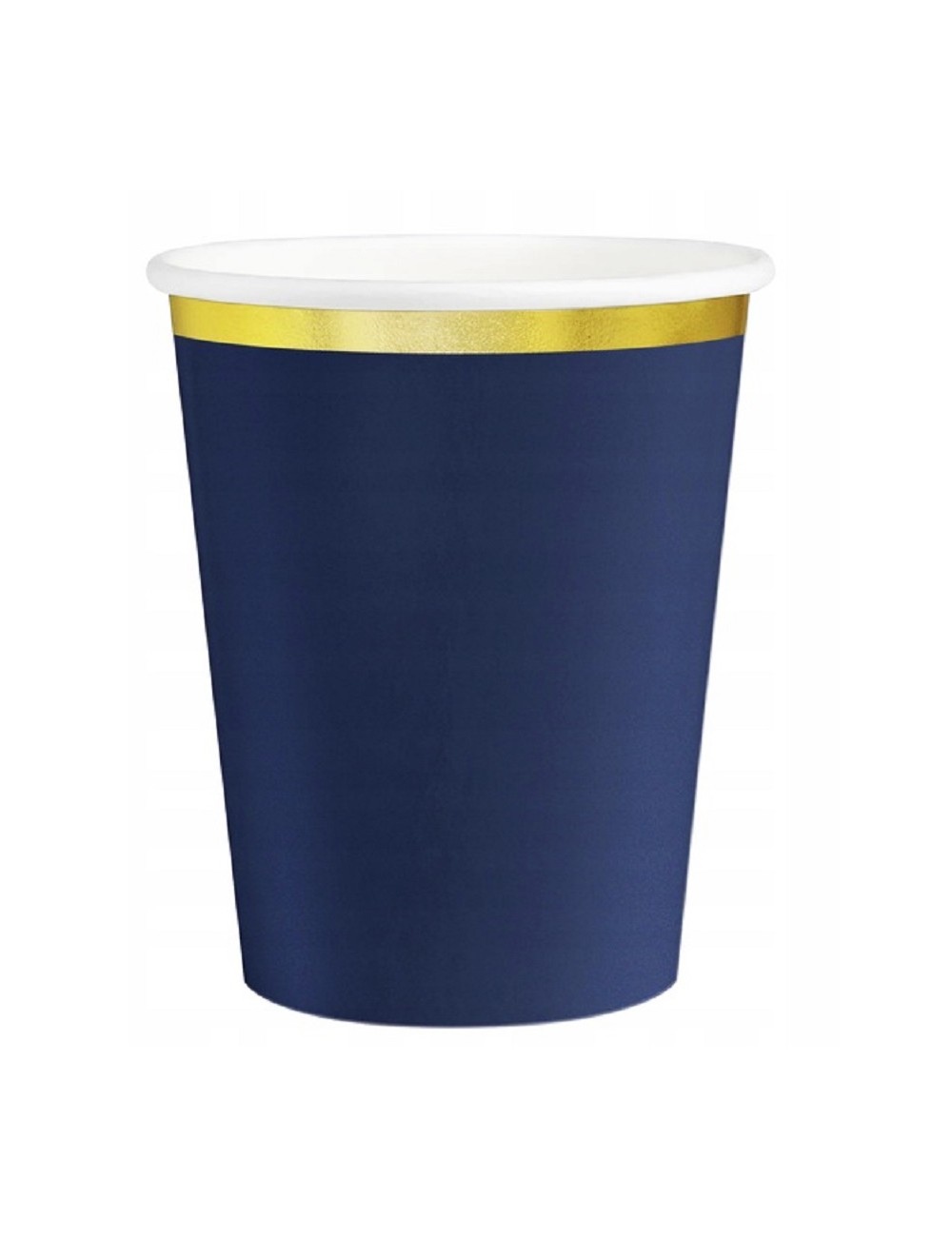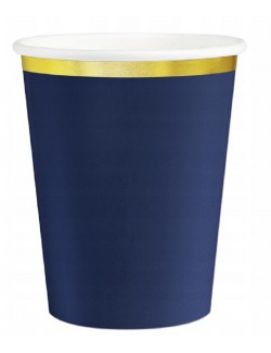Set 6 Pahare Albastru inchis, cu garnitura aurie, din carton, capacitate 220 ml, de unica folosinta.