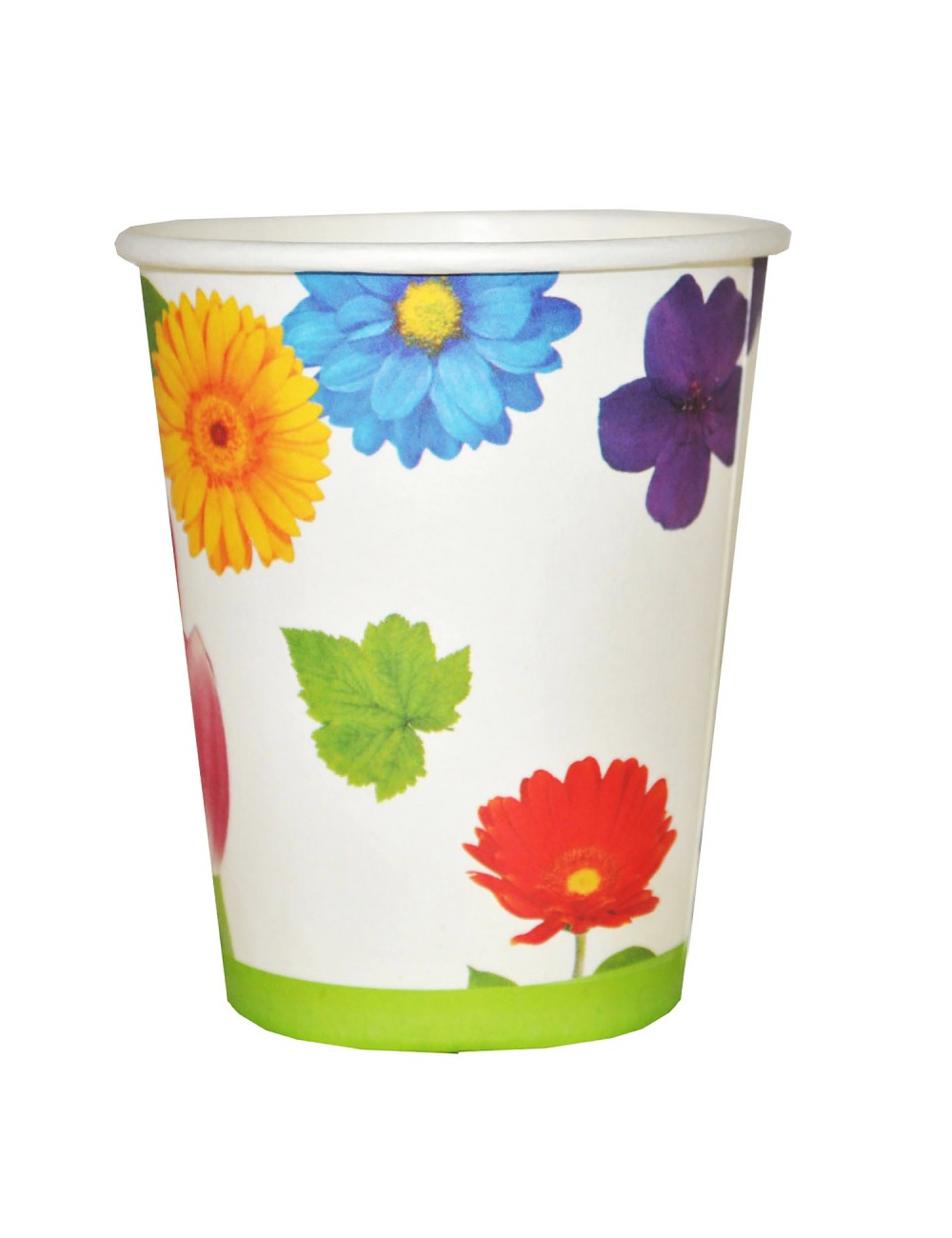 Set 8 pahare Flori multicolore - Flower Party, 250 ml, din carton, de unica folosinta, imprimate cu flori multicolore.