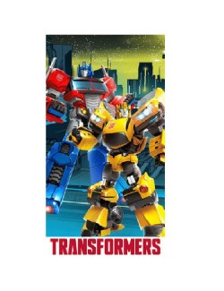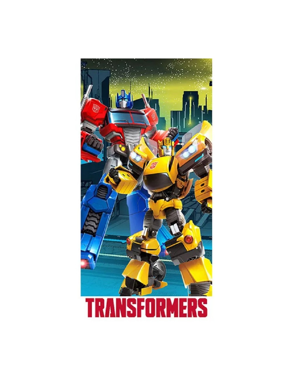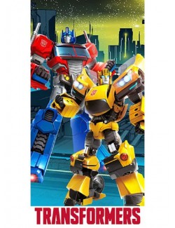 Prosop plaja Transformers Prime & Bee, dimensiuni 140 x 70 cm, multicolor, 100% bumbac, densitate 300 gr/mp.