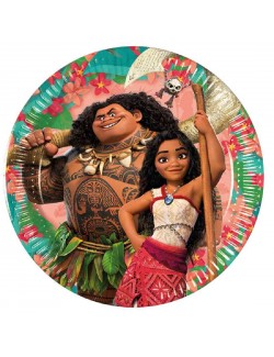 Set 8 farfurii Party Vaiana, diametru 20 cm, de unica folosinta, fabricate din carton, perfecte pentru sandvișuri și mâncare tip bufet.