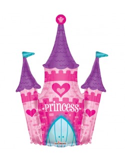 Balon folie Princess Castle, 100 x 91 cm (dezumflat), imprimeu identic fata-verso, poate fi umplut cu aer sau cu heliu.