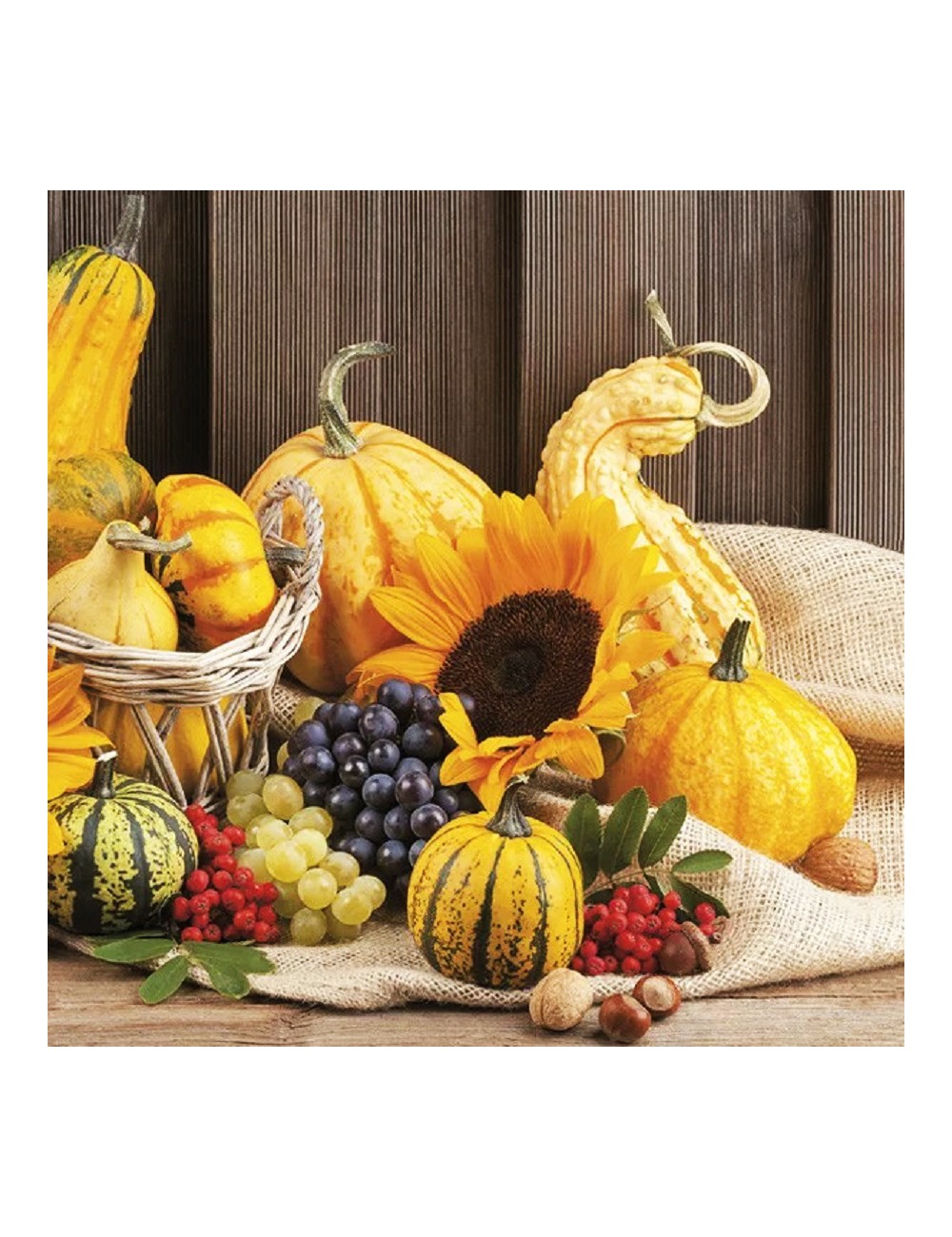 Set 20 servetele Fructele Toamnei, dimensiuni 33 x 33 cm (extins), din 3 straturi de hartie, imprimeu multicolor