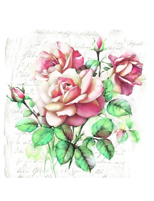 Servetele Trandafiri roz - Subtle Classic Roses, dimensiuni 33x33 cm (extins), din 3 straturi de hartie, potrivite ca decorațiuni de masă sau pentru decoupage