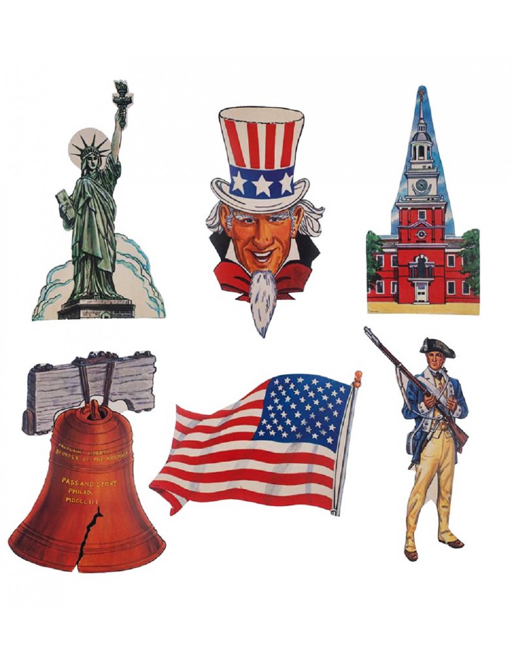 Set 6 Decoratiuni perete, SUA, fabricate din carton, fiecare dintre acestea prezentand un element definitoriu al istoriei Statelor Unite.