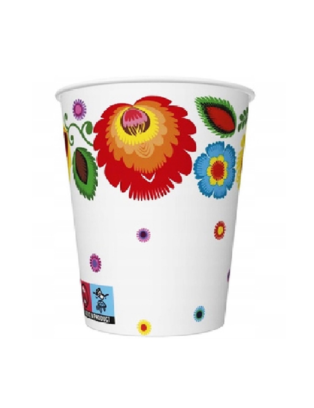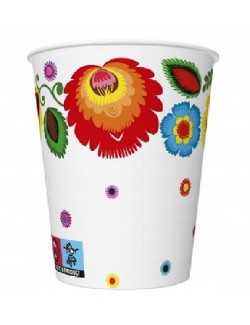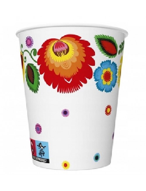 Set 8 pahare Folk - Arta populara, capacitate 250 ml, din carton, de unica folosinta, imprimeu multicolor.