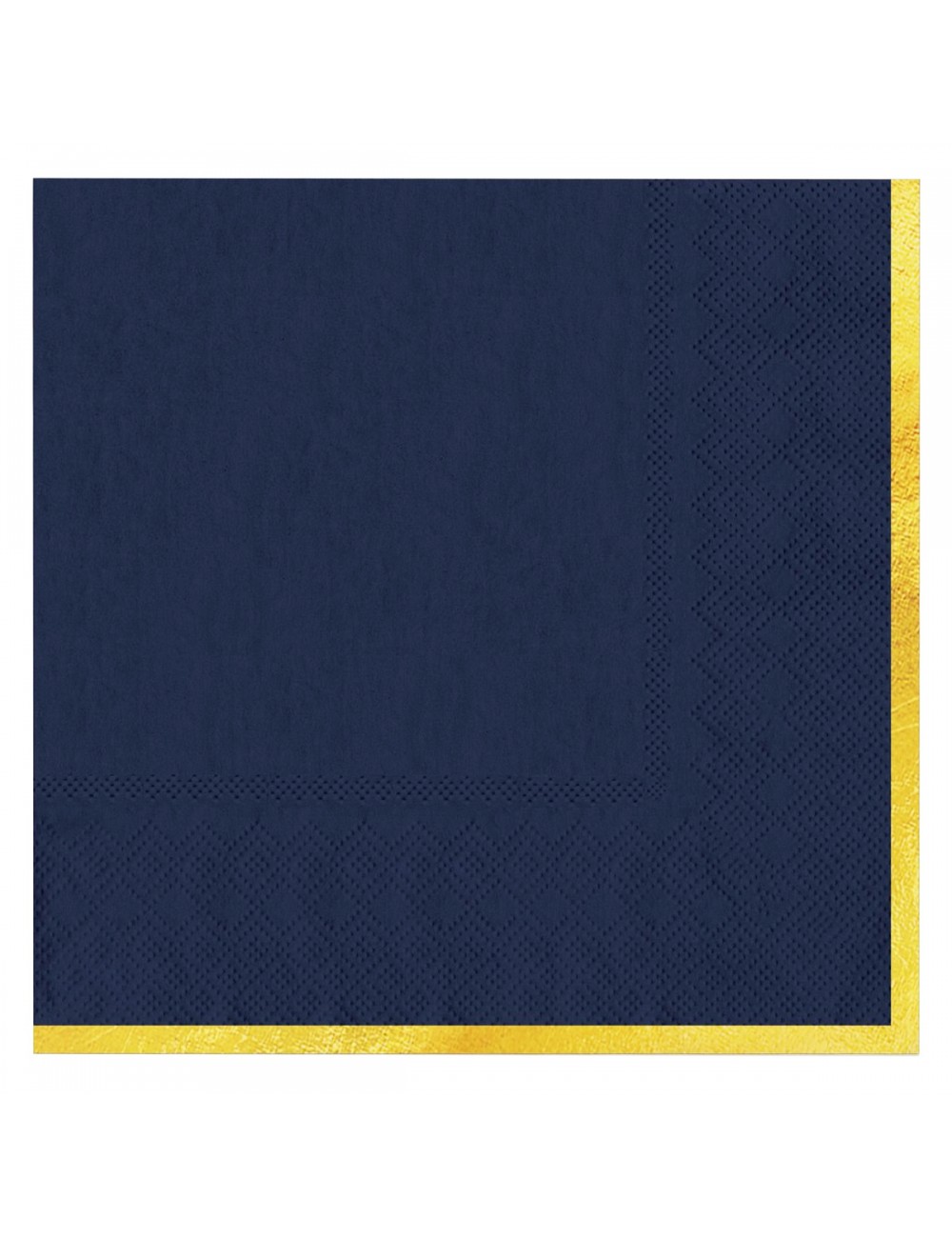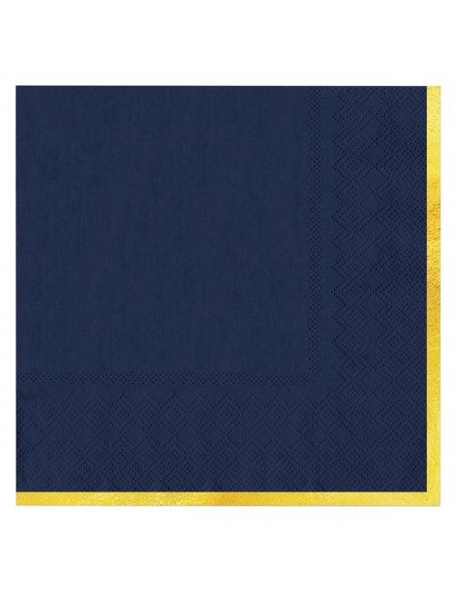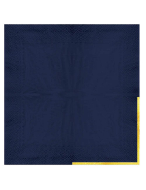 Set 10 servetele Albastre cu garnitura aurie pe o singura parte, dimensiuni 33 x 33 cm (extins), din 3 straturi de hartie fina.