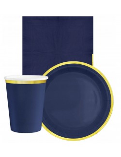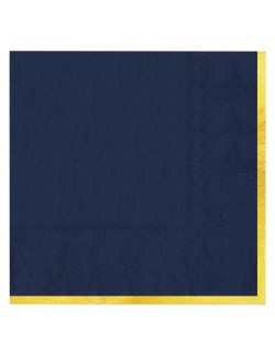 Set 10 servetele Albastre, cu garnitura aurie pe o singura parte, dimensiuni 33 x 33 cm (extins), din 3 straturi de hartie fina.