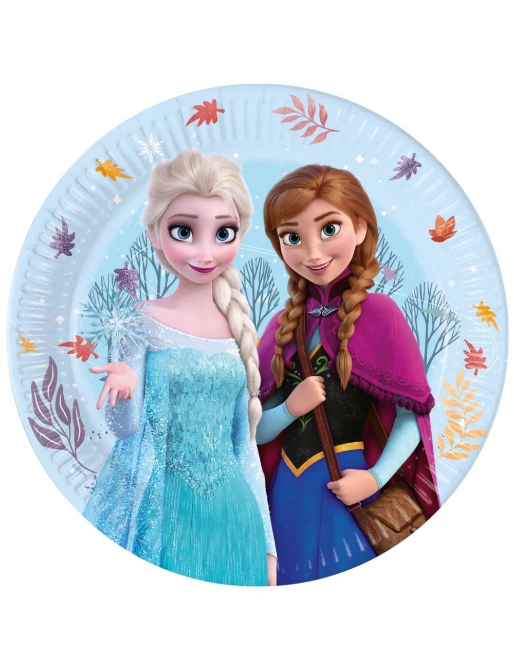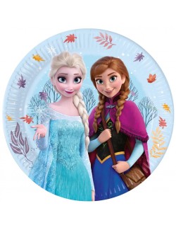 Set 8 farfurii Disney Frozen Idillyc wonder, diametru 23 cm, de unica folosinta, din carton, imprimeu cu cele doua Printese ale Regatului de gheata.