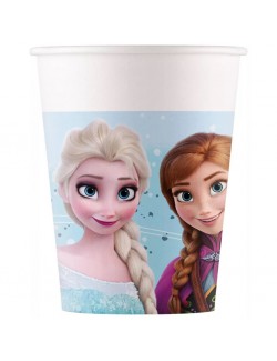 Set 8 pahare Frozen Idillyc wonder, capacitate 200 ml, din carton, de unica folosinta, imprimeu cu cele 2 frumoase printese.