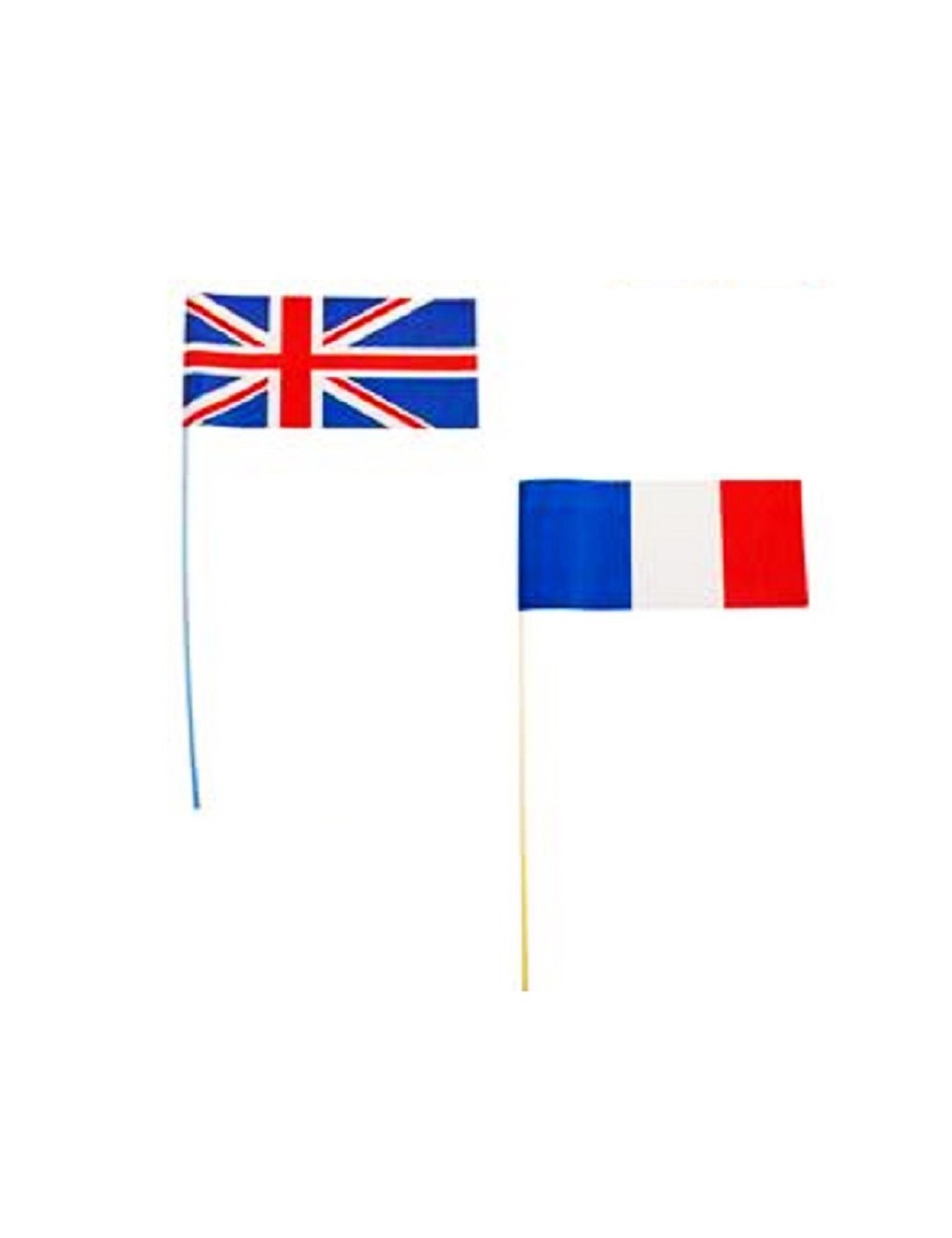Set 60 Stegulete Marea Britanie si Franta, din hartie, dimensiuni 24 x 11 cm, pe suport din plastic (diferite culori) cu lungime de 40 cm.