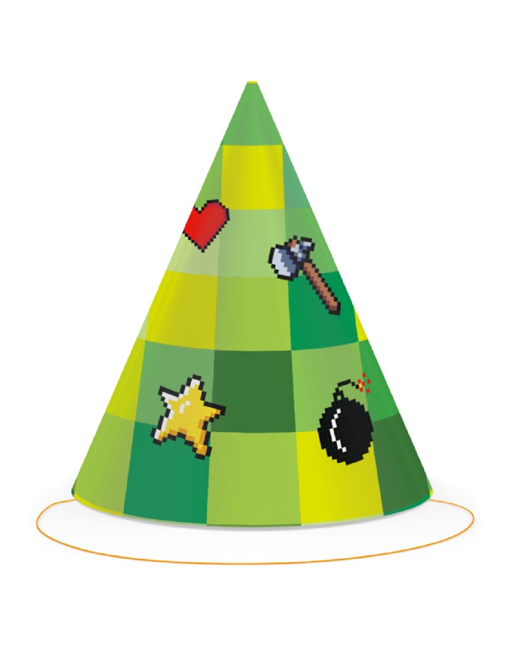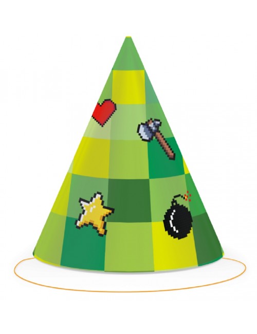 Set 6 coifuri Party TNT, din carton, prindere cu elastic, dimensiuni 11 x 16 cm, imprimeu multicolor, inspirat de minunata lume pixelata Minecraft.