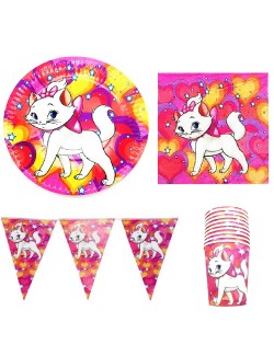 Set Petrecere Pisicuta Marie, 10 persoane, contine produse de unica folosinta, din carton/ hartie, perfecte pentru o petrecere tematica: