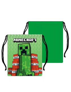 Saculet pentru pranz, Minecraft Creeper-TNT, dimensiuni 26 x 22 cm, fabricat din poliester, se inchide cu snur.