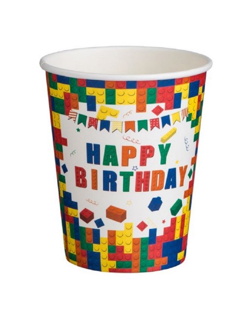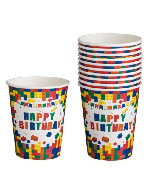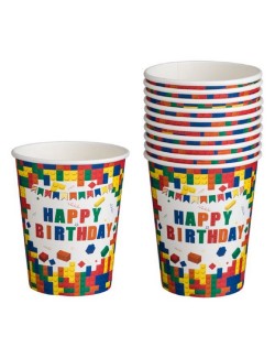 Set 10 pahare Party-bricks, 240 ml, din carton, de unica folosinta, potrivite pentru o petrecere tematica Lego bricks.
