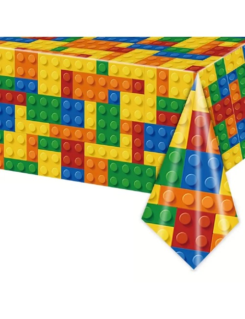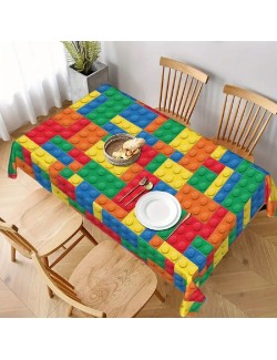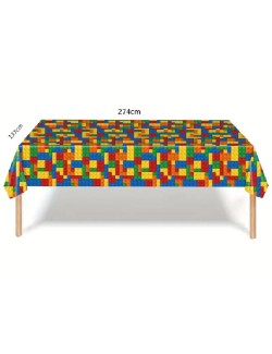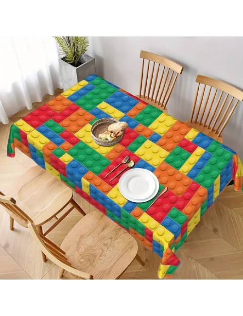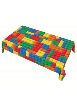 Fata de masa Bricks - Cuburi multicolore, dimensiuni 137 x 274 cm, din plastic subtire, imprimeu inspirat de piesele jocului de constructii Lego bricks.