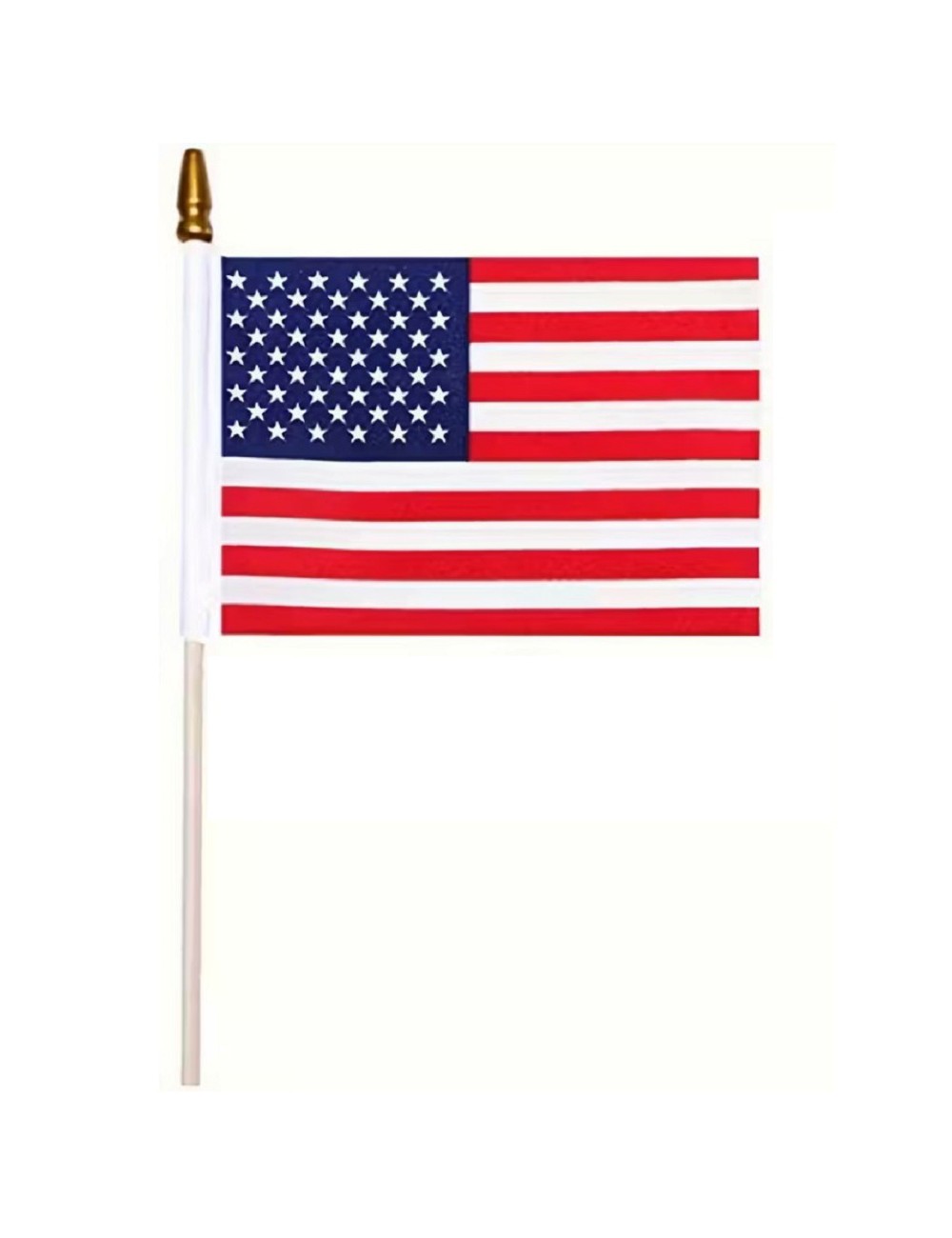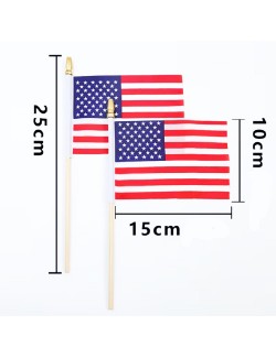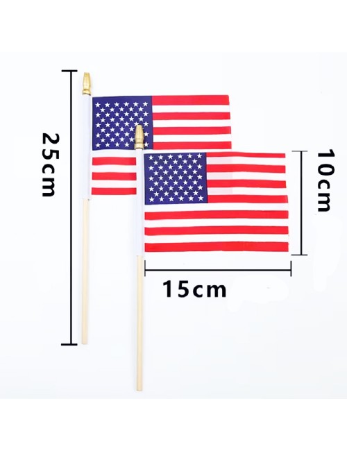 Stegulet american, cu suport din bambus, dimensiuni steag 15 x 10 cm, din material textil, 100% poliester, lungime suport 25 cm.