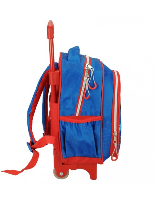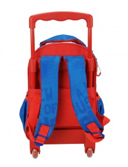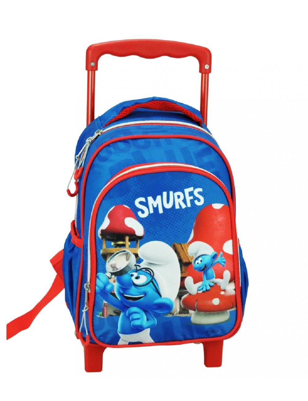 Ghiozdan troler gradinita, Strumfii, 30 x 25 x 15 cm, cu 2 compartimente inchise cu fermoar, buzunare laterale, cadru din plastic, are banda lata pentru protectia spatelui si doua bretele reglabile, dublate cu burete.