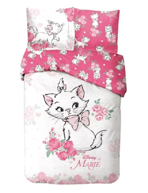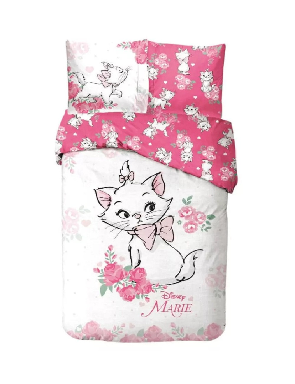Lenjerie de pat Disney Marie Roses, bumbac 100%, alcatuita din 2 piese: