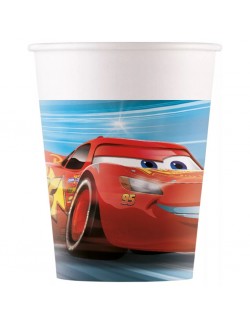 Set 8 pahare, Vehicule multicolore, 236 ml, din carton, de unica folosinta, imprimate cu numeroase vehicule cum ar fi: Autobuz, Basculanta, Camion, Masina de salubritate etc.