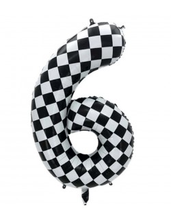 Balon folie Cifra 6, alb-negru, inaltime 101 cm (dezumflat), este potrivit pentru umplerea cu aer (nu pluteste) sau cu heliu (pluteste).