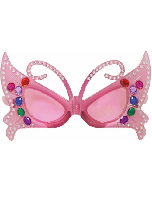 Ochelari Fluture Roz, de soare/ party, pentru copii, din plastic, forma de Fluture, accesorizati cu pietre multicolore, protectie UV 100%, nivel protectie:1.
