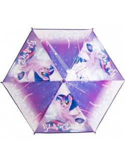 Umbrela manuala My Little Pony Twilight Sparkle, fabricata din polipropilena pe structura de metal si plastic, culori mov-alb.