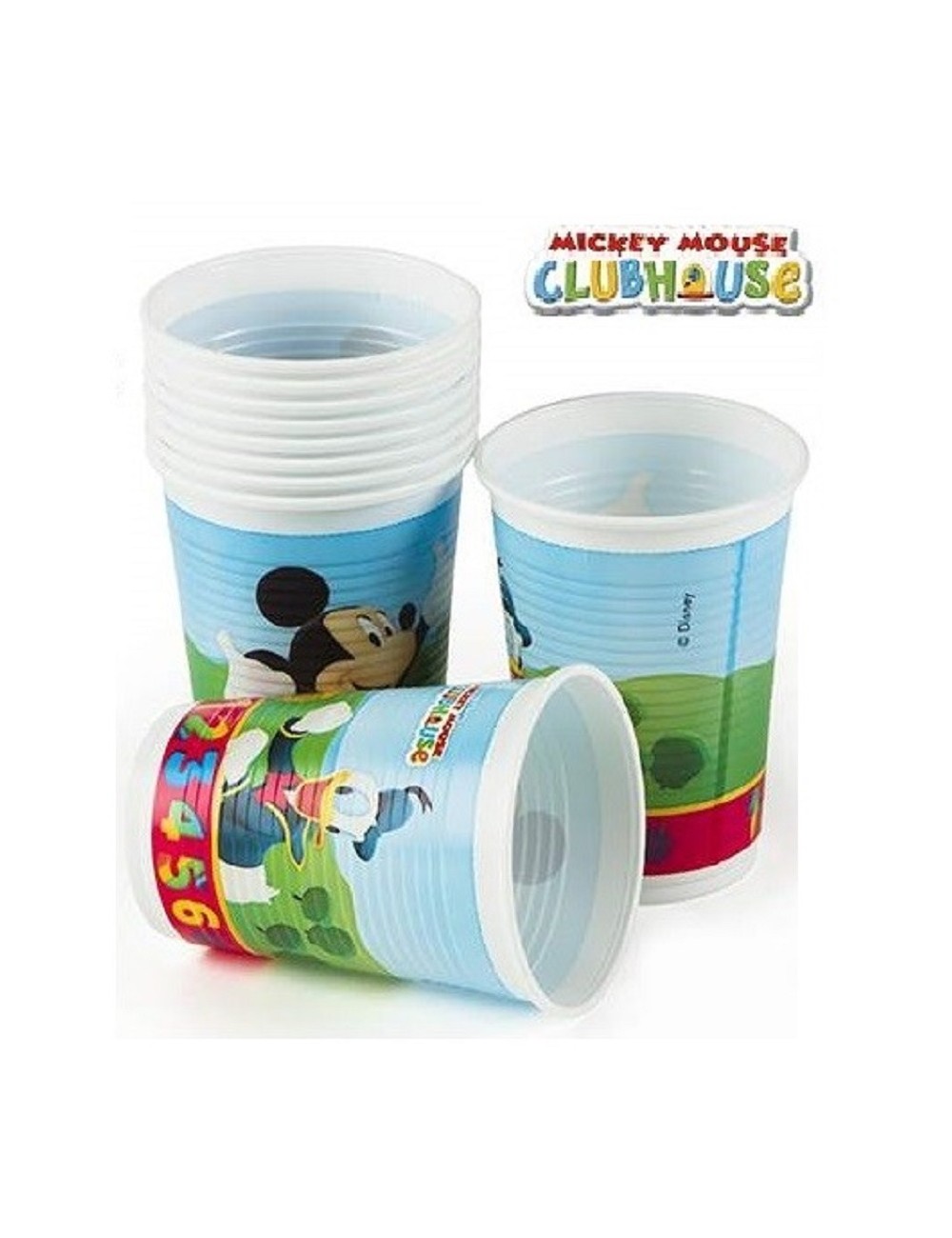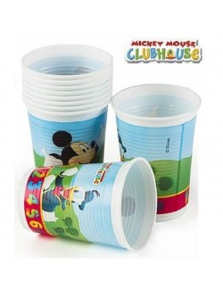 Set 10 pahare albe, Mickey Mouse, din plastic alimentar, capacitate 200 ml, potrivite pentru petrecerea tematica Disney Mickey Mouse.