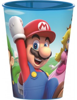 Pahar plastic, Mario Bros & Luigi, 260 ml, inaltime 9,5 cm, interior albastru, imprimeu multicolor Mario si Luigi alaturi de Printesa Peach si Toad.