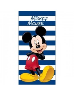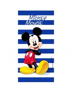Prosop pentru plaja Mickey Mouse, cu dungi alb-albastre, dimensiuni 70x140 cm, 100% bumbac.