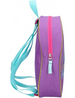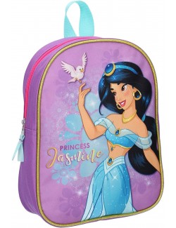 Ghiozdan rucsac Printesa Jasmine, 28 cm, culoare mov, compartiment unic, cu fermoar, bretele reglabile si un maner central.