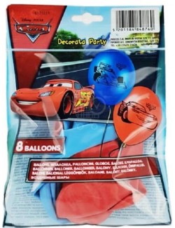 Set 8 baloane latex, Disney Cars, 27,5 cm, culori rosu si albastru, fabricate din cauciuc natural, pot fi umflate cu pompa, doar cu aer.