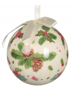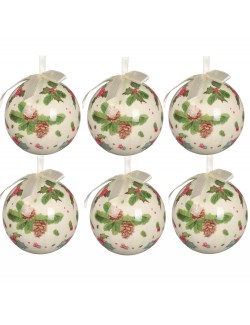 Set 6 globuri Craciun, decorate cu vasc si conuri de brad, cu diametrul de 6 cm, fabricate din acril, ambalate intr-o cutie speciala.