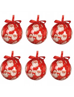Set 6 globuri rosii, Mos Craciun, cu diametrul de 7,5 cm, fabricate din acril, ambalate intr-o cutie speciala.