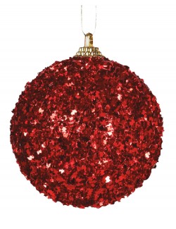 Set 3 globuri Craciun, rosii, diametru 70 mm, decorate cu sclipici rosu, fabricate din plastic, ambalate intr-o cutie transparenta.